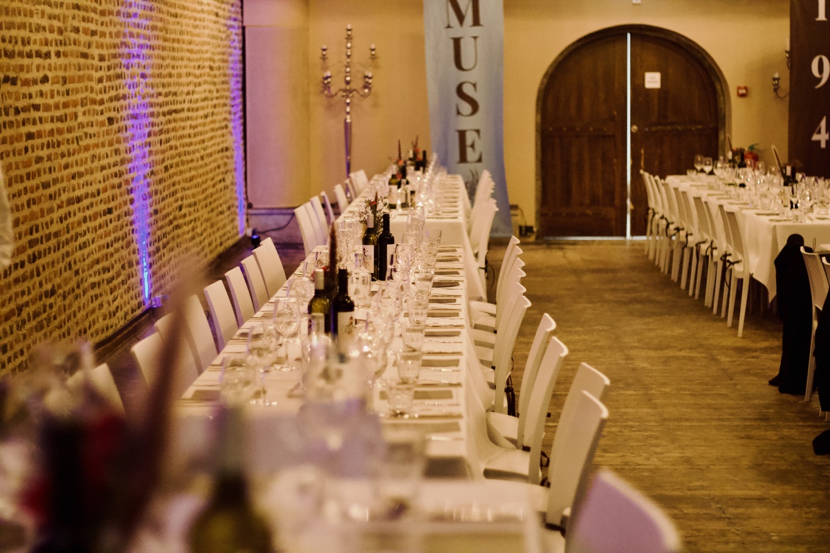 Ontvangst en diner in een sfeervolle kasteelzaal